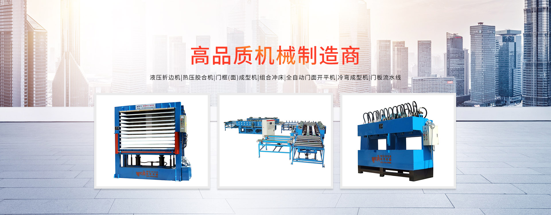 溫州偉華機(jī)械制造有限公司地處浙江溫州瑞安市塘下工業(yè)區(qū),創(chuàng)建于2009年,數(shù)年來(lái)全心致力于防盜門(mén)專(zhuān)用設(shè)備的研發(fā)制造,主營(yíng)產(chǎn)品有:門(mén)面成型機(jī)、門(mén)框成型機(jī)、熱壓膠合機(jī)、組合沖床、液壓折邊機(jī)、雙頭沖床、門(mén)面開(kāi)平機(jī)。現(xiàn)已具備獨(dú)特的管理模式和產(chǎn)品開(kāi)發(fā)能力,歷經(jīng)多年的努力,現(xiàn)已發(fā)展成為國(guó)內(nèi)最具影響力的機(jī)械設(shè)備企業(yè)之一。
